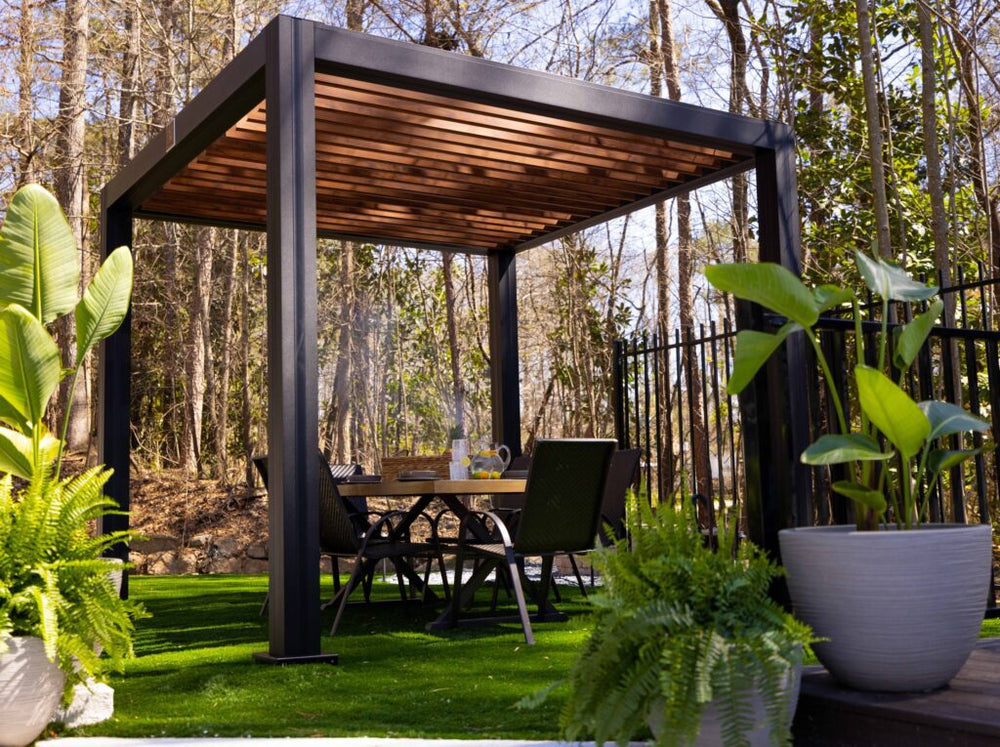 Louvered pergola builds upon the legacy of our Pergola X Classic, blending superior strength with refined design to create a sophisticated and long-lasting outdoor retreat.